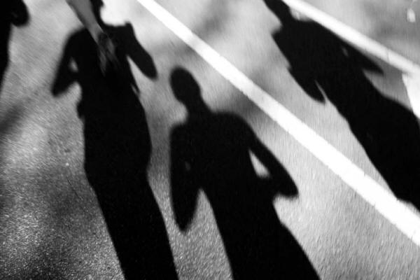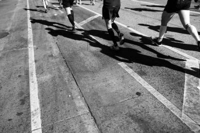 visioni mosse e fuori fuoco dell’asfalto, della tua ombra, delle gambe di chi corre con te, hai di fronte il muro.